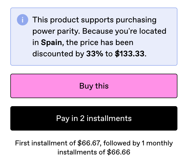 Save money if you are physically located in one of the required countries 🫰 also enabled the option to pay in 2 installments 🚀